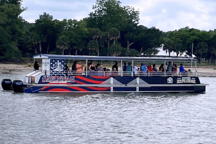 Come aboard the River Explorer, conveniently located on River Street in downtown Savannah! Join us as the crew embarks on a sightseeing dolphin eco-tour of the Lowcountry! On this dolphin tour in Savannah, you will make your way down river passing the containerships heading up river to the Port of Savannah.
